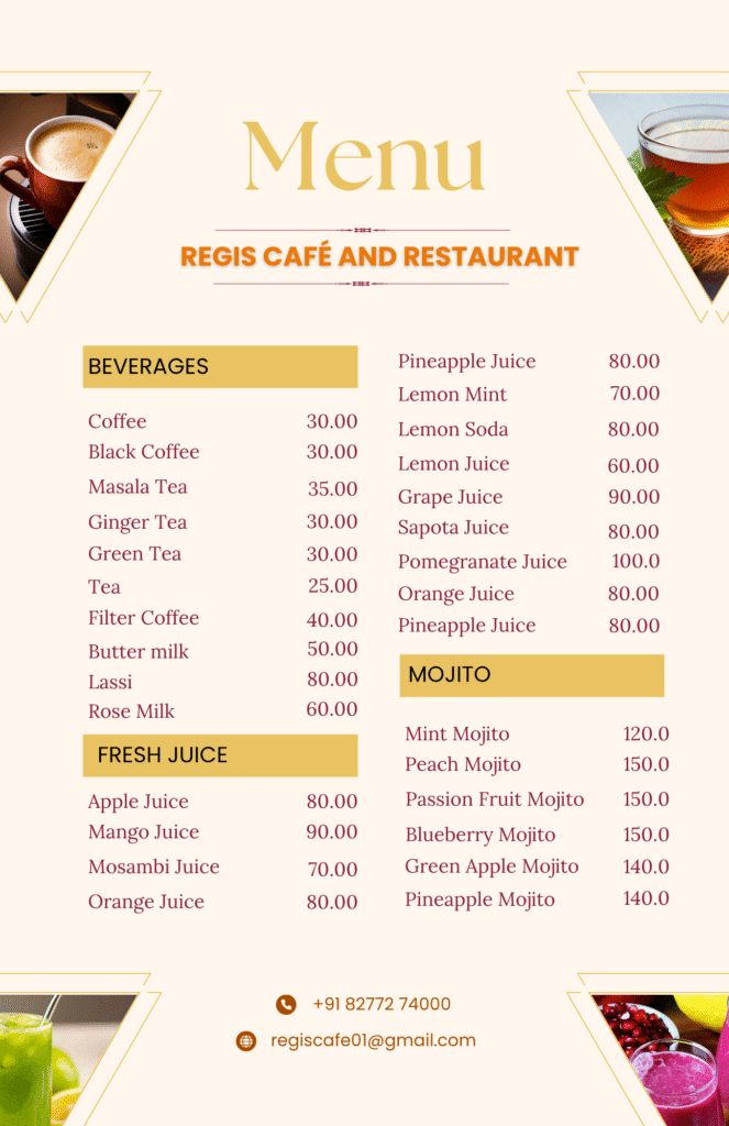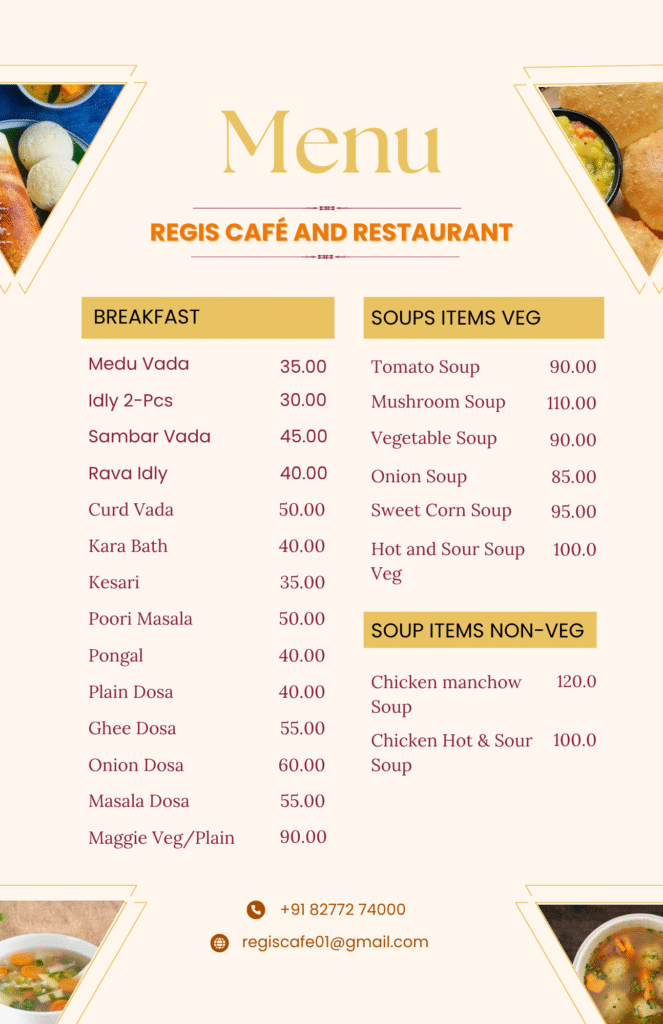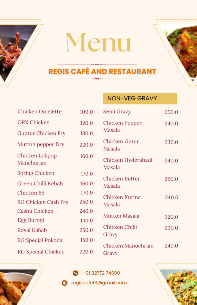 At Regis Cafe and Restaurant, located in Kolar Gold Fields, Local BEML Nagar, we bring together the best of taste and comfort.